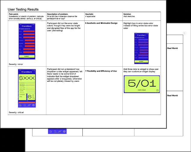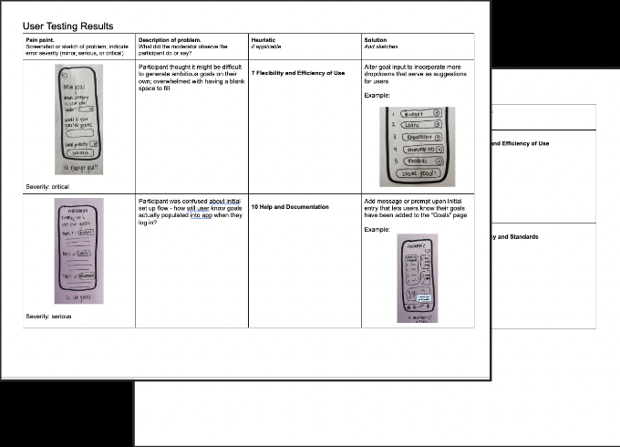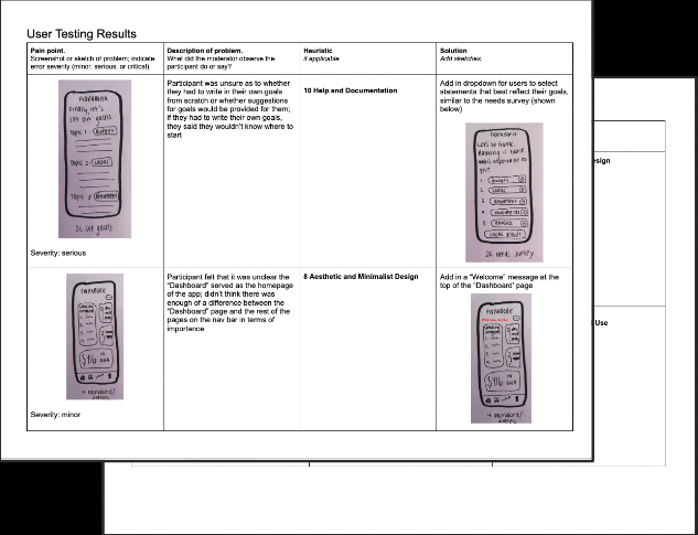 Changes made from paper prototypes